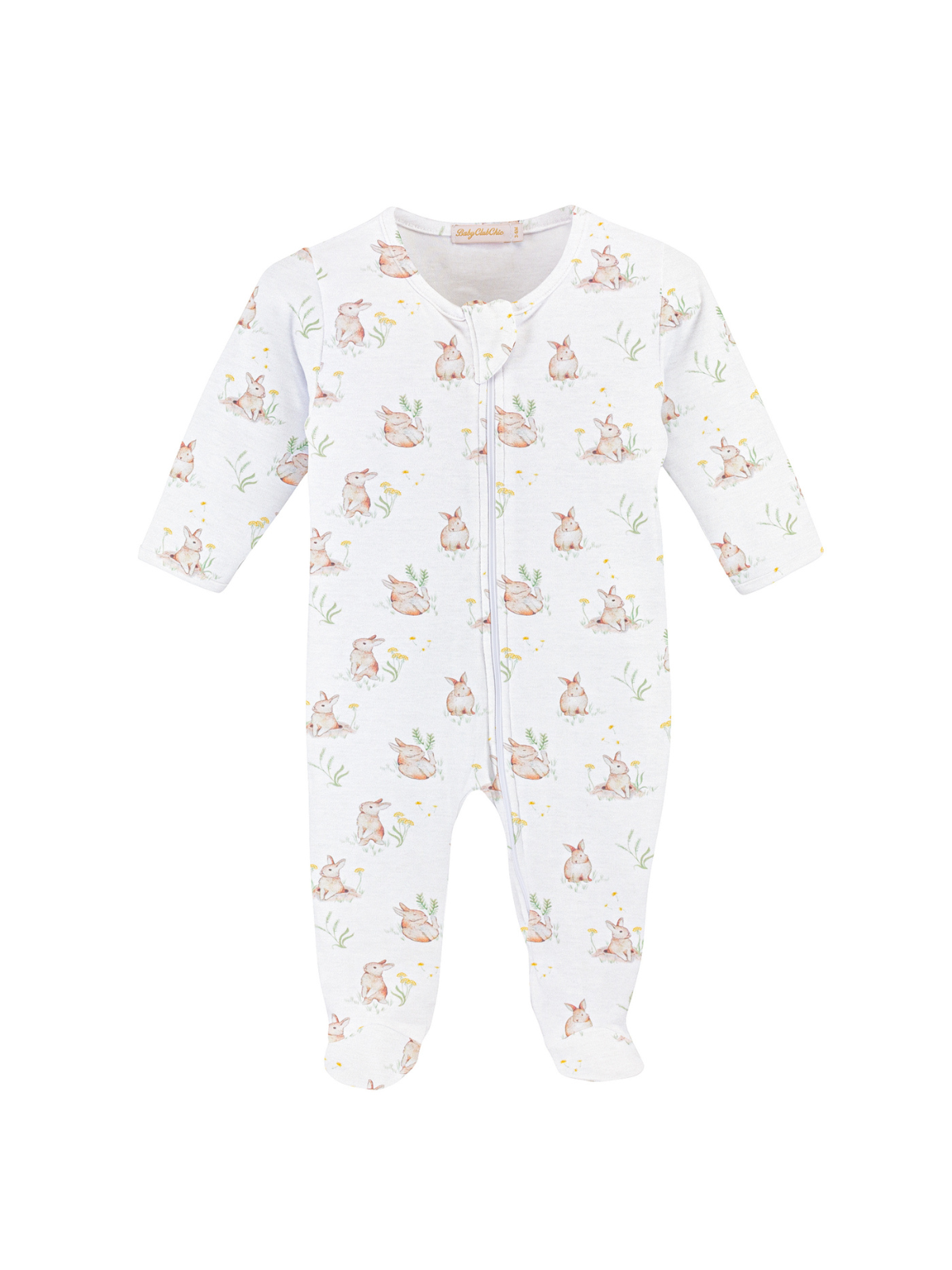 Bunny love. Made from supremely soft Pima cotton, this Bunny's Garden Zipped Footie features a playful allover bunny print and an asymmetrical zip closure for easy access.