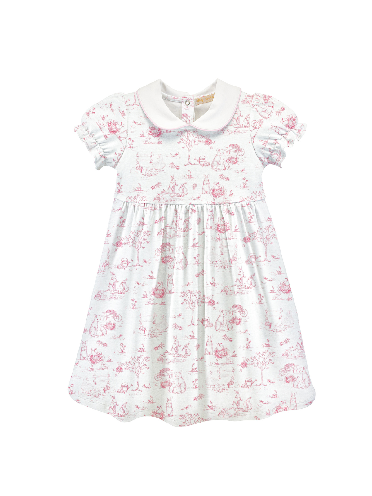 Pink Toile Bunnies Collared Dress