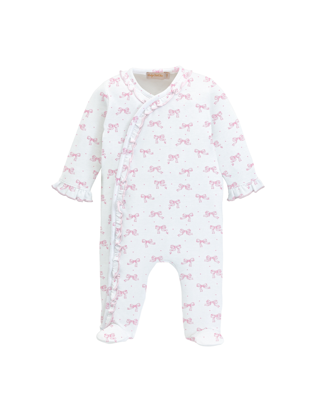 Wrapped in a bow. Made from the finest Peruvian Pima cotton, this Tiny Pretty Bows Ruffle Printed Footie features a classic footie fit with ruffle details and an all-over bow print.