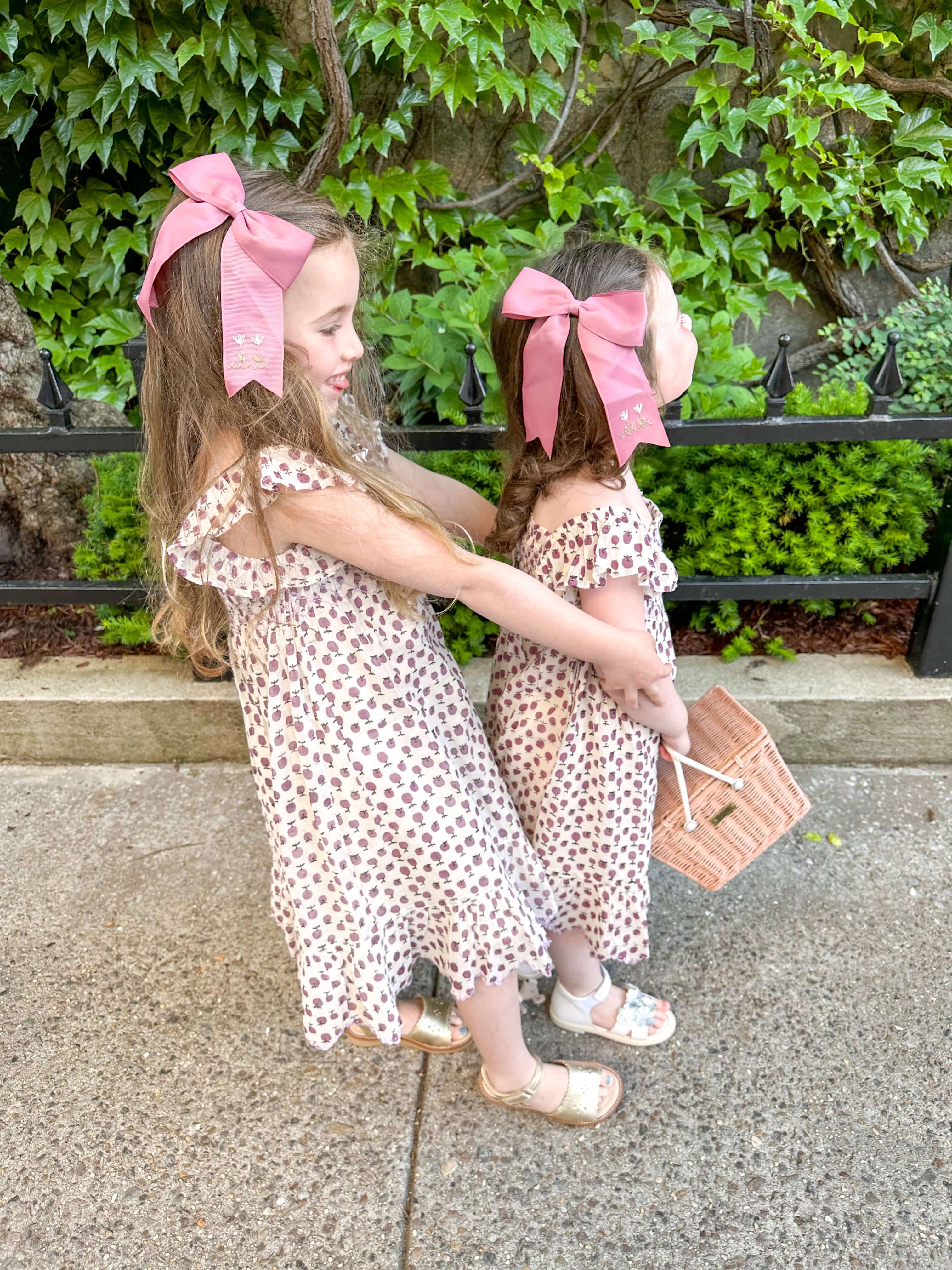 We love playing in dress up and picnicking in Central Park! I am always looking for beautiful, but unique hair accessories for the girls. I love how these grosgrain ribbons are hand-stitched by one of my favorite brands–Hibiscus linens. And this pink wicker picnic basket is absolutely precious!