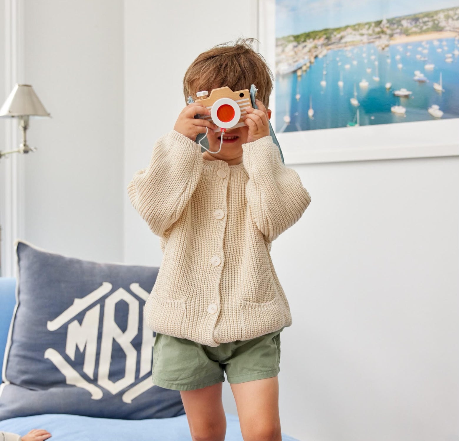This Waffle Cardigan paired with shorts makes for the sweetest summer-into-fall combo :) Teddy loves this little camera toy!