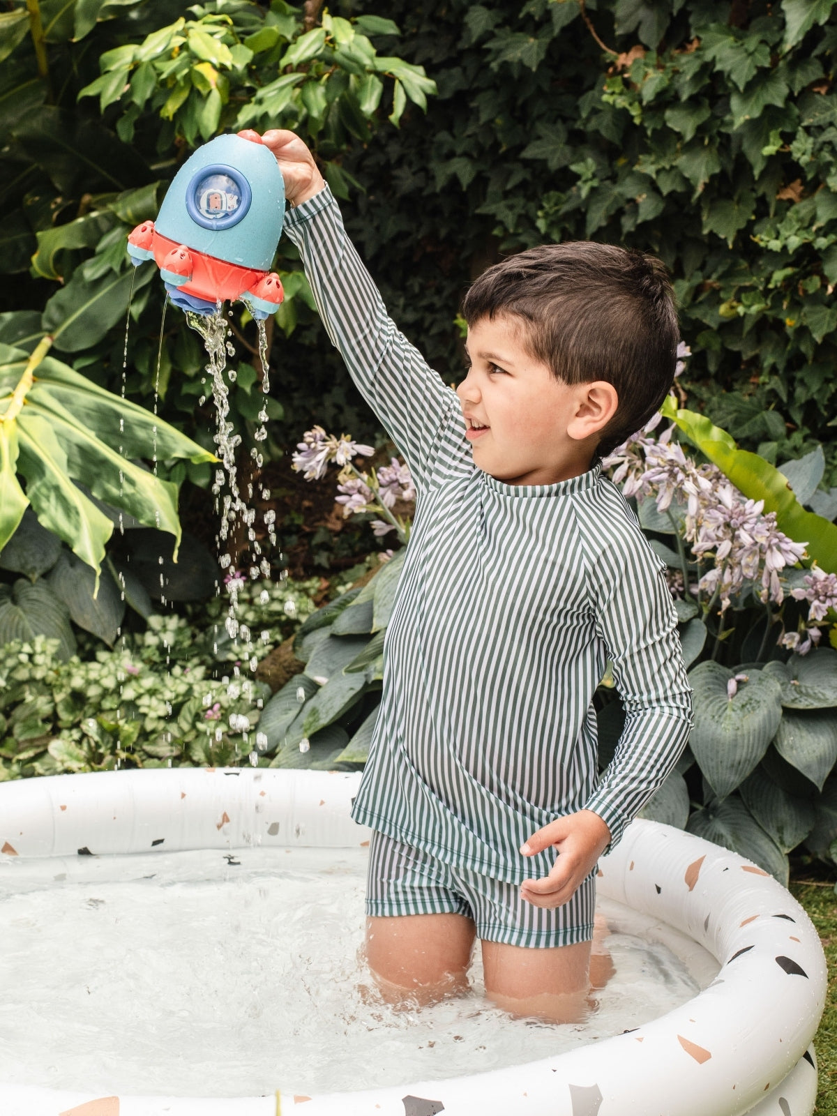 Lift-off at bath time. The Bath Rocket is a floating, spinning water toy that pours and cascades as it fills, designed to encourage sensory play and cause-and-effect learning for little ones. Suitable for ages 18m+.