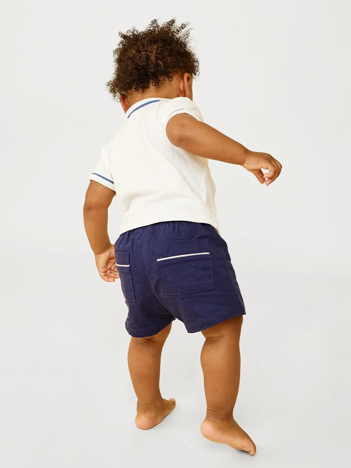 Built for movement, the Bingo Short – Navy features a shorter inseam for easy running and play, contrast cord detailing, and piped pockets for a clean finish. Designed with a flexible, adjustable waistband and pull-on style with no zippers or buttons, it’s a go-to short made to keep up all season long.