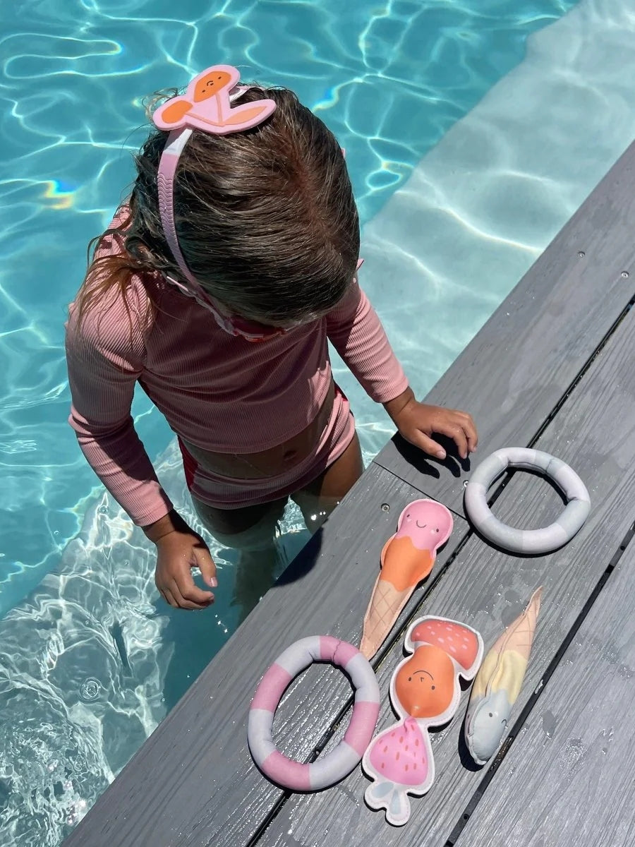 Colorful confidence for pool days ahead, the Dive Buddies – Cotton Candy set includes six playful dive toys designed to build underwater skills through active fun. Made from sustainable natural rubber, they’re an easy way to boost water confidence and bring extra energy to summer swim sessions.
