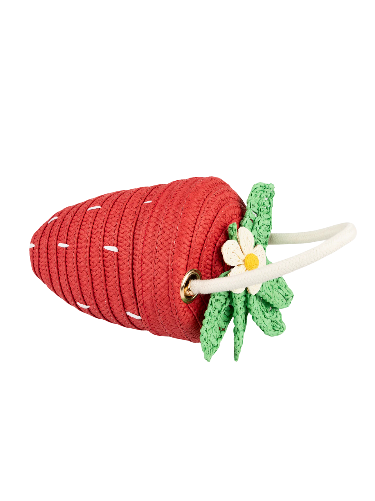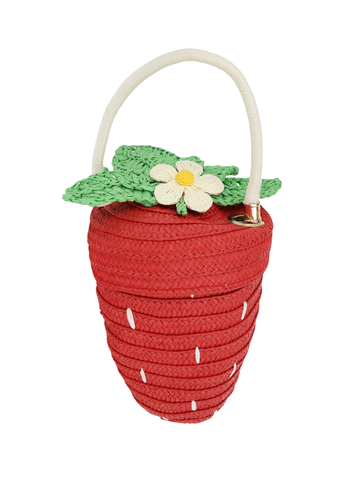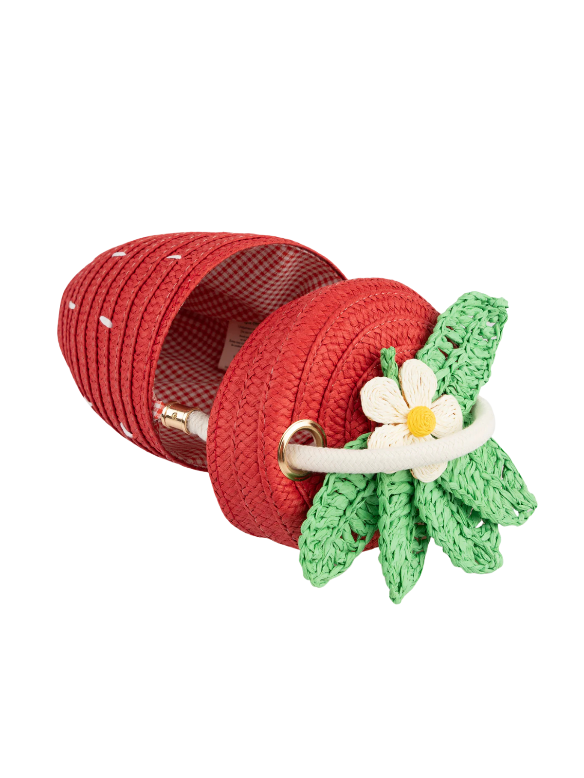 A sweet little statement for spring. The Strawberry Basket Purse is crafted from woven red paper with crocheted leaf and flower details, a gingham-lined interior, and a pull-cord top that opens with ease. Perfect for carrying tiny treasures (and adding a juicy pop of color).